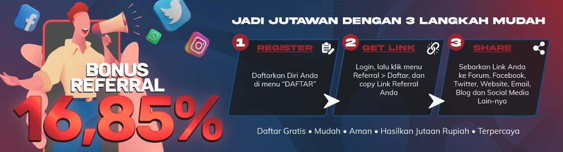Referral system tidak dipungut biaya apapun. Hanya dengan modal online saja setelah itu Anda hanya tinggal mengecek keuntungan Anda yang dapat dilihatsecara online kapanpun dan dimanapun. Register sekarang juga dan referensikan Link referral Anda.